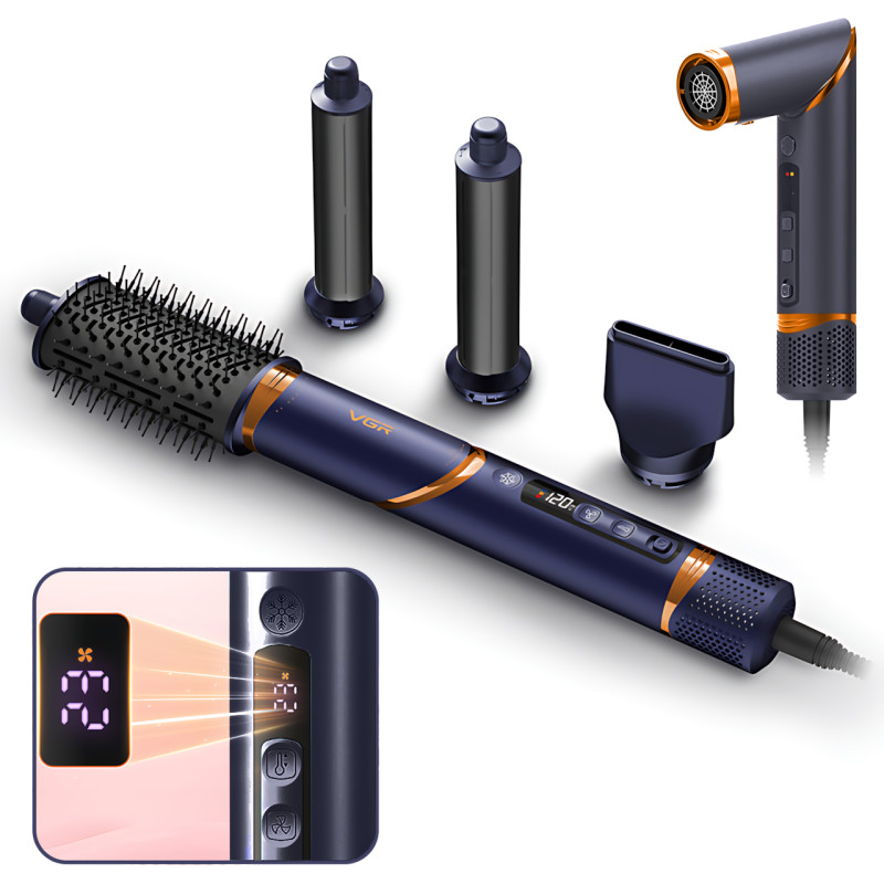 Фен-стайлер VGR V-474, 1400 Вт, 4 насадки: концентратор, щітка, випрямляч, плойка, обертовий шнур, захист від перегрівання