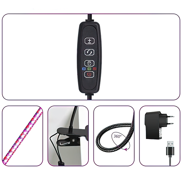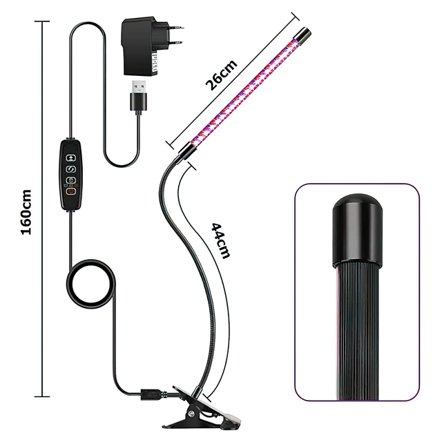 Пропонуємо компактну світлодіодну фітолампу повного спектра для освітлення кімнатних рослин і вирощування розсади. Лампа легко кріпиться на поверхні завдяки гнучкій ніжці з кліпсою. Брак природного світла уповільнює ріст рослин, тому використання фітолампи необхідне. Вона забезпечує спектр світла, що відповідає потребам рослин. Фітолампа — незамінний помічник для вирощування кімнатних рослин і розсади. Купуйте свою лампу повного спектра вже зараз для здоров'я та краси ваших рослин.