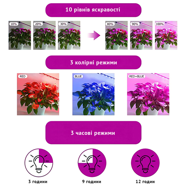 Фітолампа для рослин повний спектр із таймером і регулюванням яскравості