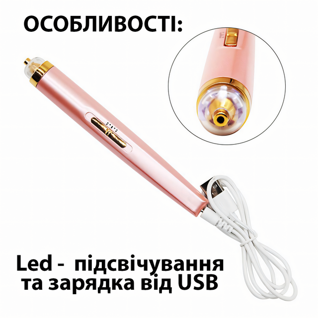 Фрезер для манікюру та педикюру Flawless Salon Nails, 1 Вт, 5 насадок, USB заряджання, 2 швидкості, акумулятор