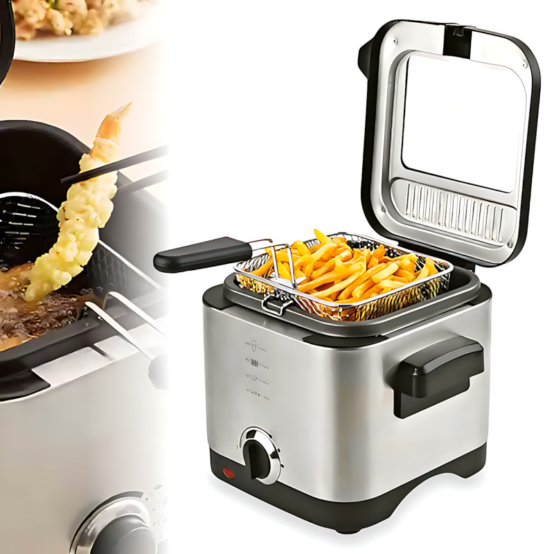 Потужний нагрівальний елемент 1200 Вт справляється із завданням за лічені хвилини. А вбудований фільтр проти запахів подбає про те, щоб кухня не наповнилася ароматом смаженого. Компактний розмір дозволяє легко розмістити фритюрницю навіть у невеликій кухні, а антипригарне покриття робить догляд за нею простим і зручним.