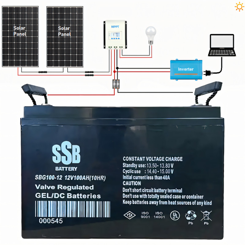 Гелевий акумулятор SSB 100 А 12 V для інвертора, силовий АКБ для безперебійного живлення