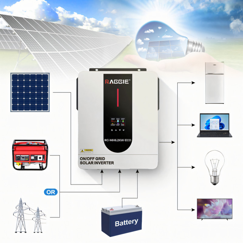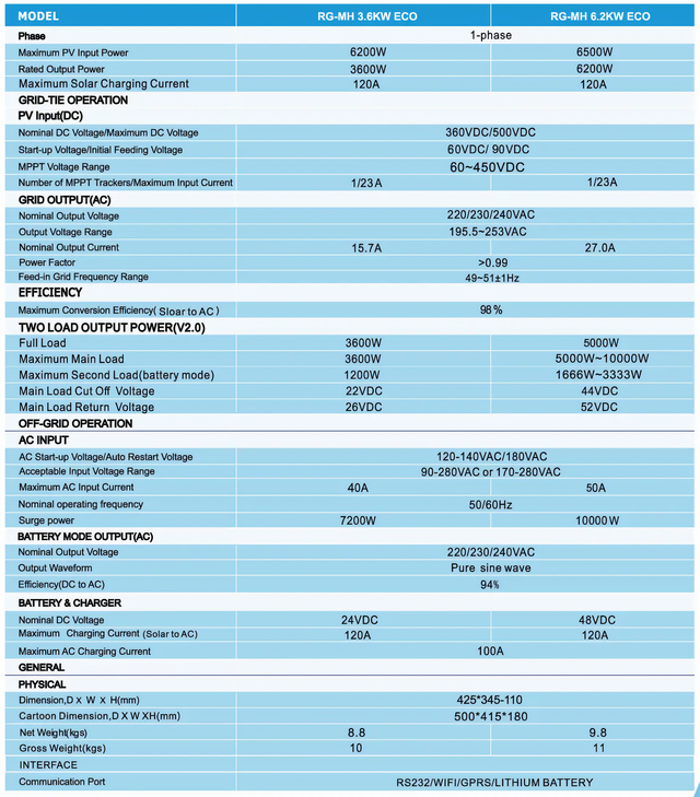 Гібридний інвертор RG-MH6.2KW-ECO (48V), зарядний пристрій для забезпечення безперебійного живлення MPPT-120A