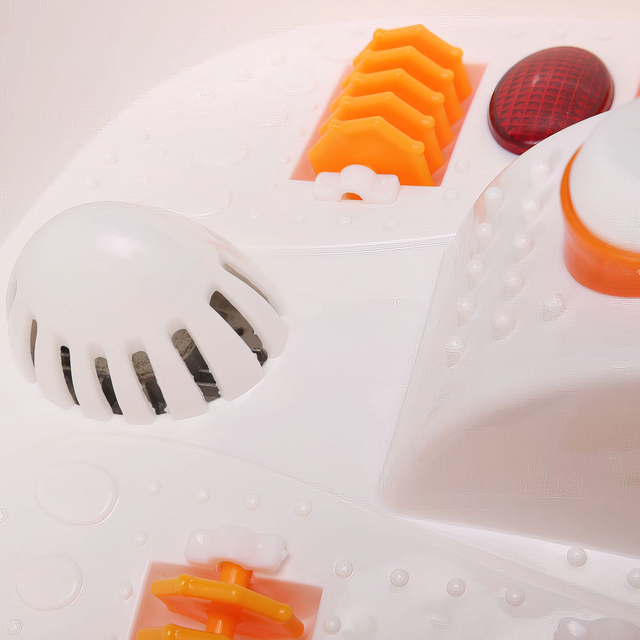- Спеціальна форма ванночки дає змогу зручно розмістити ноги та запобігає розбризкуванню води;