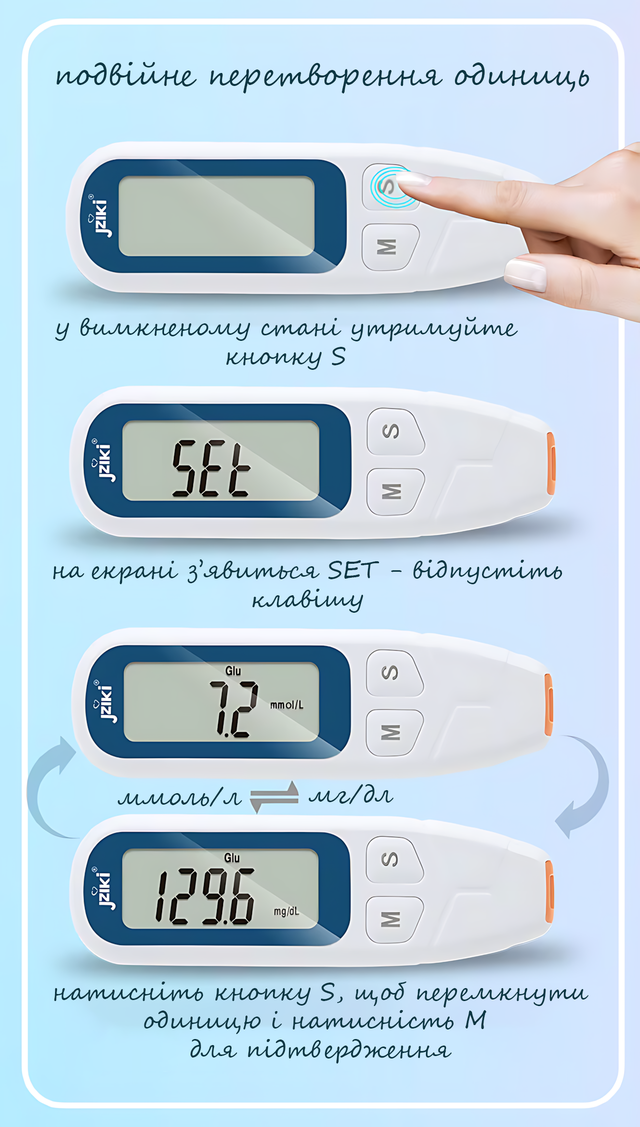 Глюкометр Jziki JZK-206 для вимірювання цукру в крові, висока точність, швидкий тест 5 сек, на батарейці