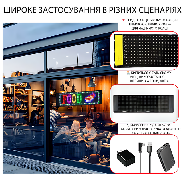 ART-0569 — це більше, ніж просто бігаючий рядок. Це гнучкий, вологозахищений LED-дисплей. Довжиною 133 см, який можна розмістити де завгодно: на вітрині, у кафе, на авто, у торговому залі, навіть на зігнутій поверхні. Керуй ним прямо з телефона або пультом — показуй текст, графіку, анімації, годинник, дату, музичні ефекти та створюй атмосферу за секунди.