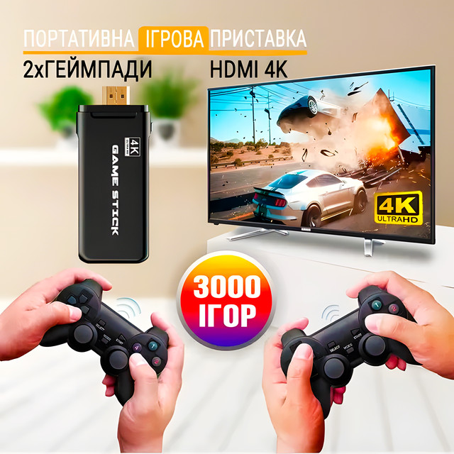 Ігрова приставка Mini Game Stick 4K HDMI M8, 10000+ Ігр, 64 gb + 2 бездротові джойстики