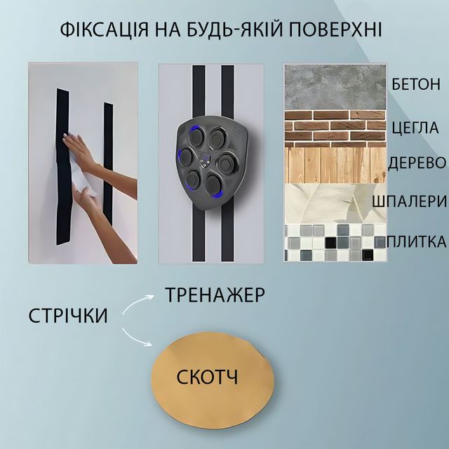 - Кріплення на стіну (двосторонній круглий скотч — 1 шт. + ленточки с липучкой - 4шт.);