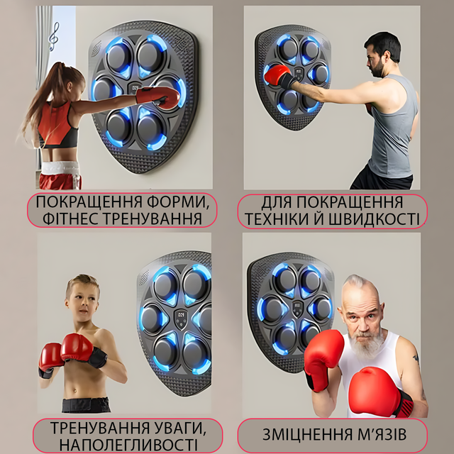 Інтерактивна боксерська пластина Shield Six Target, груша для фітнесу, бокса з RGB-підсвіткою й музикою