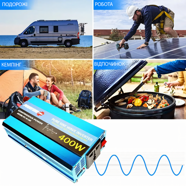 Інвертор Power One 400 W, перетворювач постійного струму, автомобільний інвертор, чиста синусоїда
