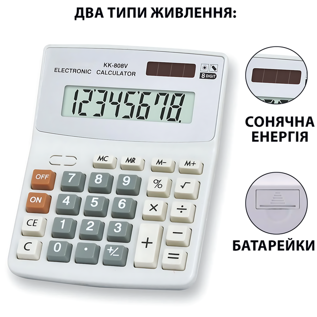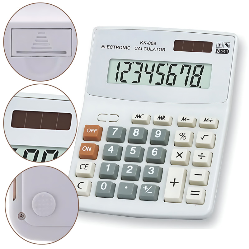 ???? Настільний калькулятор KK-808 — надійний помічник в офісі, магазині, навчанні та навіть удома. Легко справляється з повсякденними розрахунками, а зручні високі клавіші забезпечують комфорт під час роботи з цифрами.