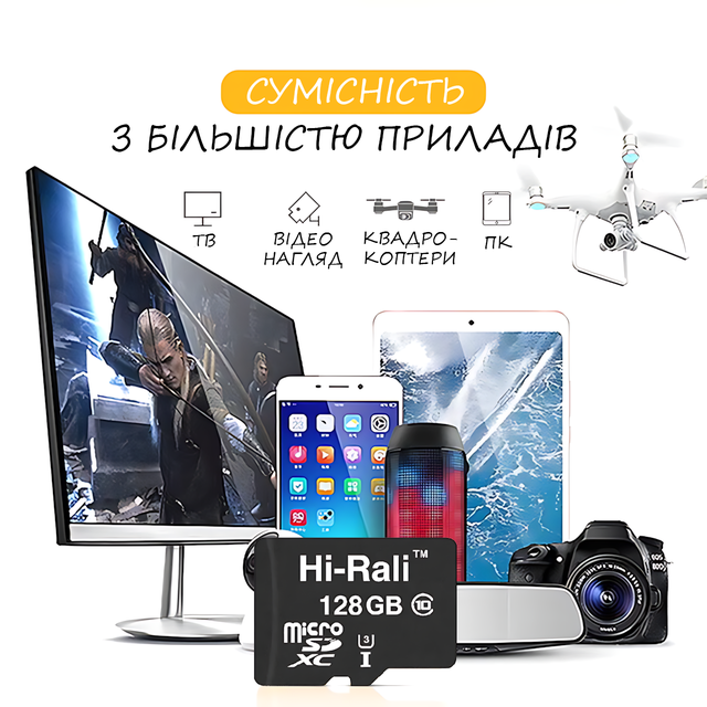 - Картка пам'яті Hi-Rali MicroSDXC 128 GB;
