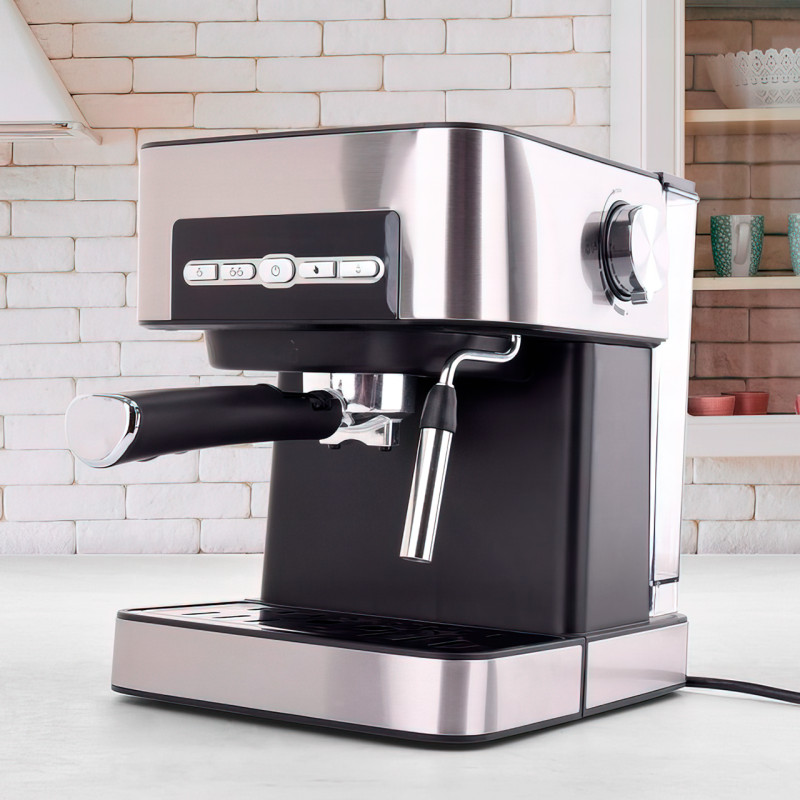 Кавомашина Crownberg CB-1566 — це власна кав'ярня у вашому домі. За допомогою пристрою можна готувати всі різновиди улюблених напоїв від еспресо й американо до лате, капучино або рафа. На панелі керування вам доступні чотири основні кнопки: для одинарної порції еспресо, подвійної, ручної проливання та подавання пари на стикір також із правого боку є тумблер для регулювання тиску пари. Прилад варить чудову каву з зерен середнього помелу — це знахідка для шанувальників кавових напоїв.