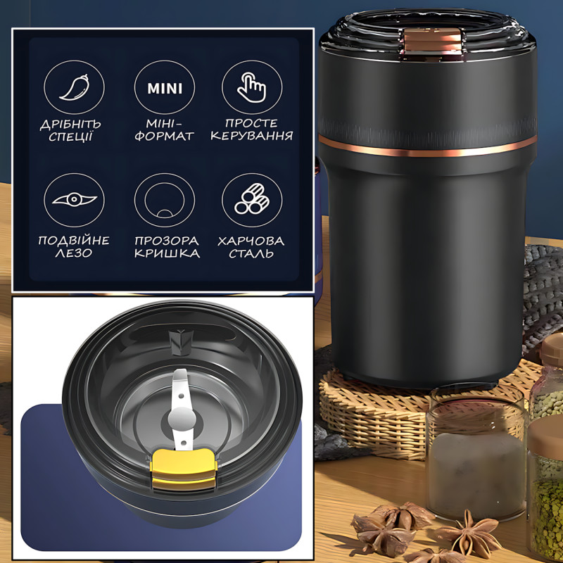 - Універсальність: Підходить для подрібнення різних продуктів, включно з квасолями, горіхами та спеціями, що заощаджує час і зусилля.