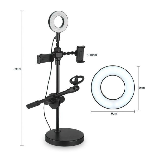 Кільцева LED-лампа Youtuber HA-12, 9 см, 10 Вт, від USB, з підставкою для мікрофона та телефона