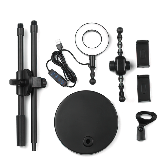 З її кільцевим дизайном і вбудованими світлодіодами, лампа забезпечує рівномірне освітлення, ідеальне для фото- та відеознімання. Вона також функціонує як зручна підставка для мікрофона, телефона та камери, що надає їй універсальність і зручність у використанні.