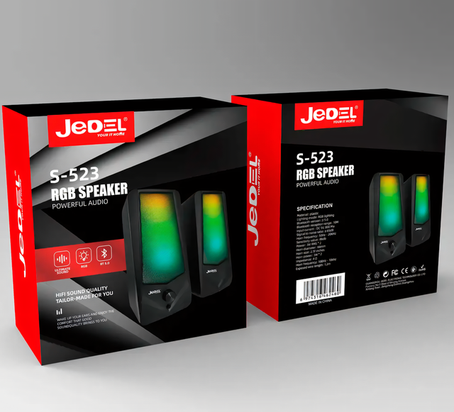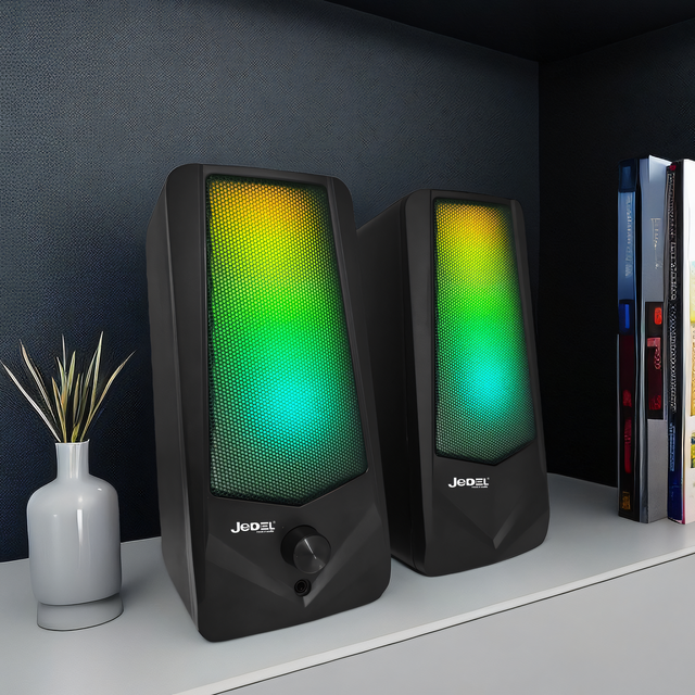Колонки для PC 2.0 JEDEL S523. USB-динамік RGB з Bluetooth. Настільна стереоколонка для комп'ютера, 19x8 см.