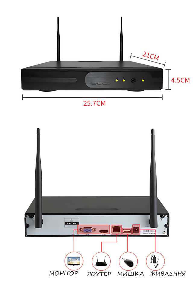 - Wi-Fi відеореєстратор для запису та приймання відеосигналу;