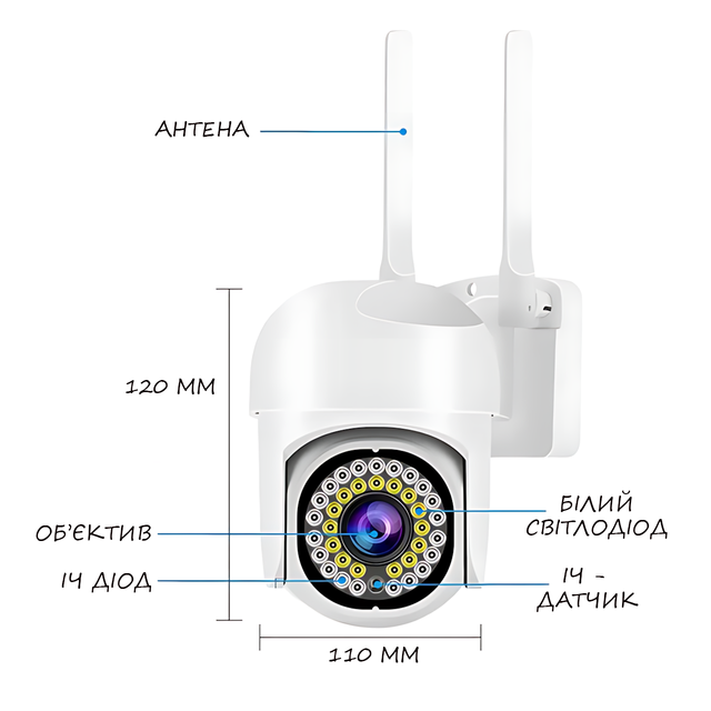 - Нічне бачення: інфрачервона підсвітка до 30 метрів;