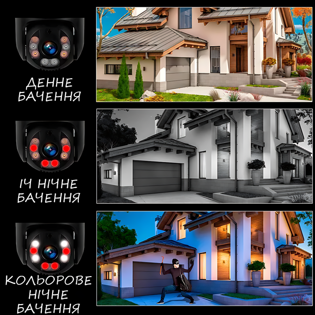 - Нічне бачення з ІЧ-підсвіткою: Камери обладнані інфрачервоною підсвіткою на відстані до 25 м;