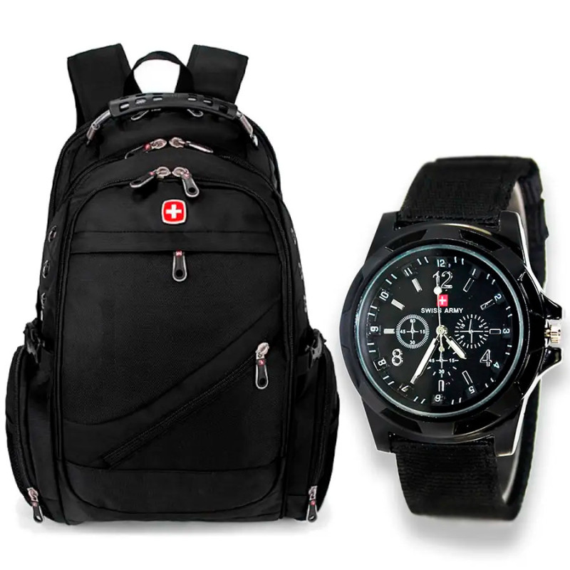 Комплект: водонепроникний швейцарський міський рюкзак + ударостійкий водонепроникний люмінесцентний годинник