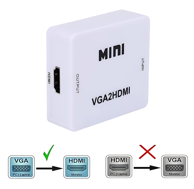 - Простий перехід з VGA на HDMI: Забудьте про додаткові кабелі та перехідники. Цей адаптер забезпечує пряме та швидке під'єднання вашого пристрою з VGA до HDMI-телевізорів і моніторів, надаючи вам зручність і якість без зайвих складнощів.