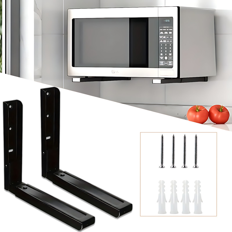 - Висока якість: Настінні кронштейни для мікрохвильовки виготовлені з високоякісної сталі, міцної та досить надійної для підтримки мікрохвильових печей вагою до 40 кг. Поверхня покрита антидряпальним покриттям і не іржавіє;