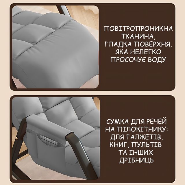- 🛋 2-в-1: крісло та ліжко — регульована спинка перетворює крісло на затишну зону відпочинку.
