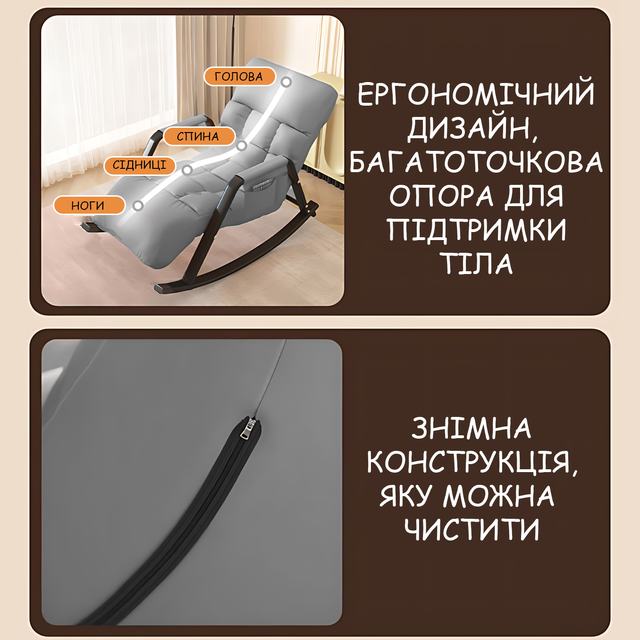 Плавне гойдання діє краще, ніж ASMR або медитація, а регульована спинка підлаштується під будь-яке «хочу»: