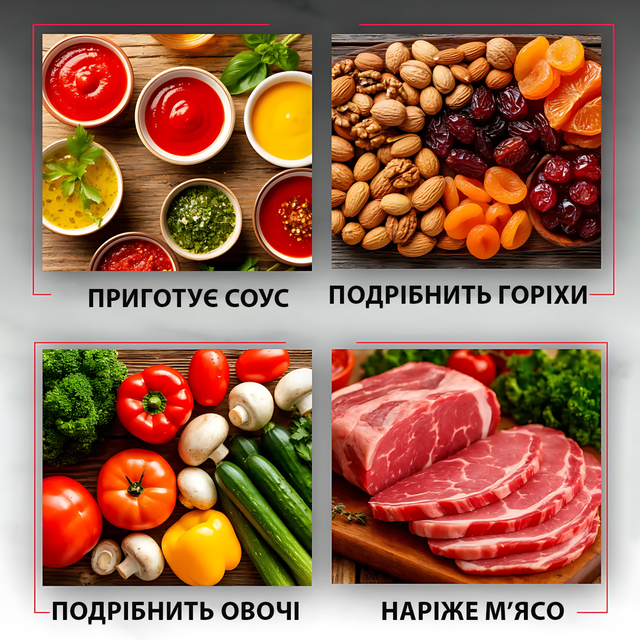 - ???? 10 функцій в одному пристрої — від шаткування до соусів, від фаршу до пюре