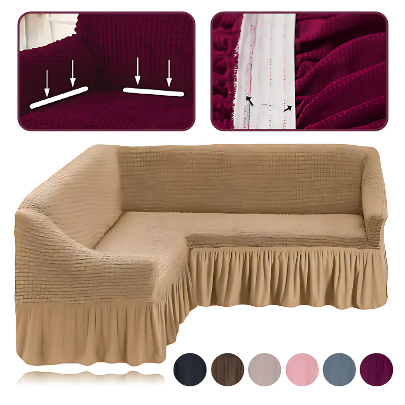 Кутовий чохол-натяжка Hommy Turkey — практичне та стильне рішення для збереження краси та чистоти меблів. Він підходить для диванів різних форм та розмірів завдяки високій еластичності тканини. Чохол не лише захищає оббивку від забруднень та зносу, а й змінює інтер'єр, надаючи меблям акуратного та доглянутого вигляду. Матеріал із гофрованою структурою забезпечує привабливий вигляд і комфорт при використанні, а вбудовані ущільнювачі дозволяють зафіксувати виріб, виключаючи зісковзування. Універсальний розмір та різноманіття кольорів роблять чохол зручним для будь-яких інтер'єрів.
