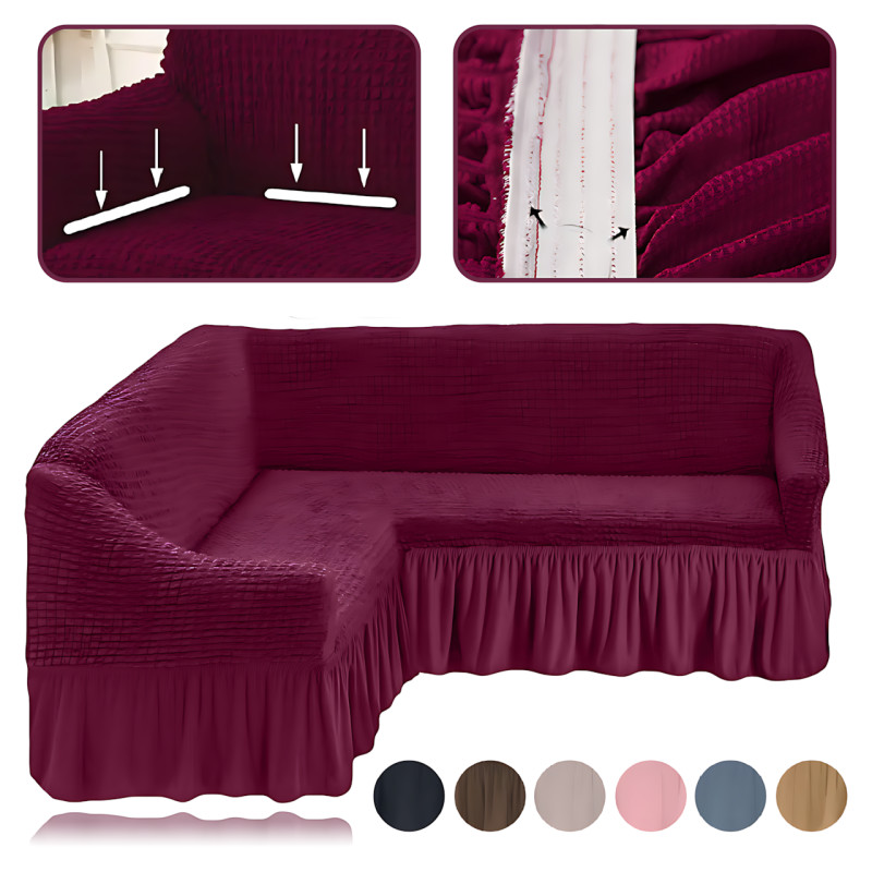 Кутовий натяжний чохол Hommy Turkey – еластичний чохол для дивана, універсальний розмір Бордовий