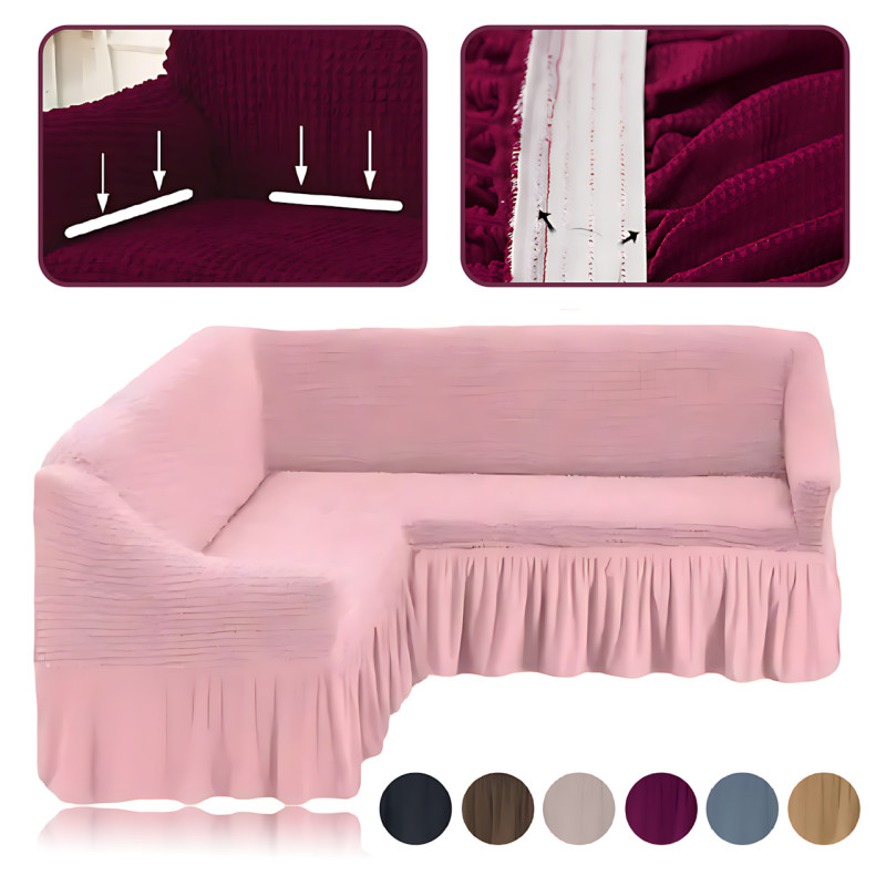 Кутовий натяжний чохол Hommy Turkey – еластичний чохол для дивана, універсальний розмір Рожевий