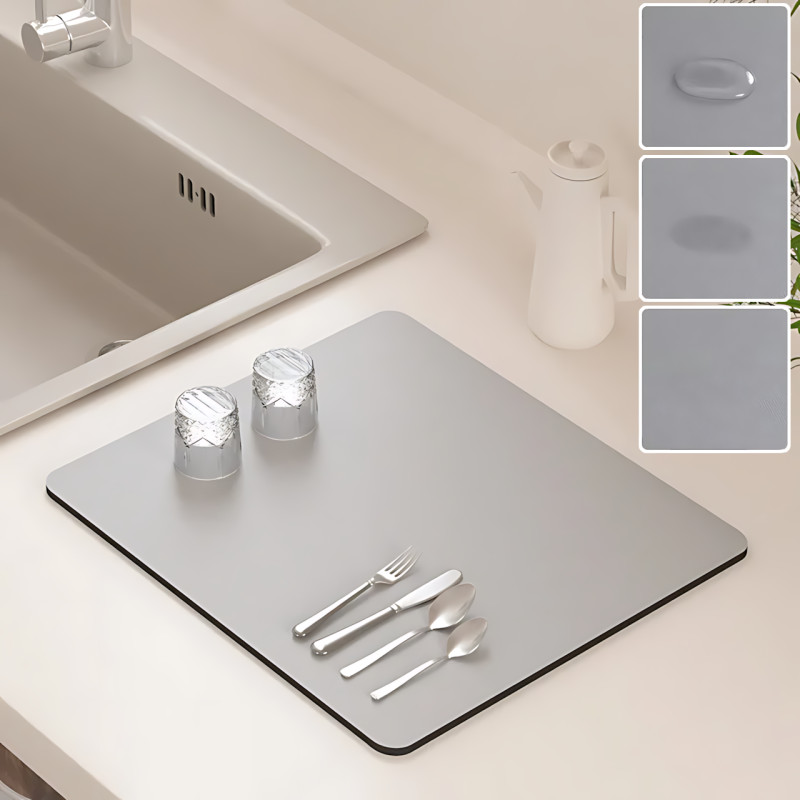 Сучасний матеріал із діатомітом забезпечує блискавичне вбирання. А міцна нековзна основа фіксує килимок на місці. Стильний сірий колір гармонує з будь-яким інтер'єром — від класики до хай-теку.