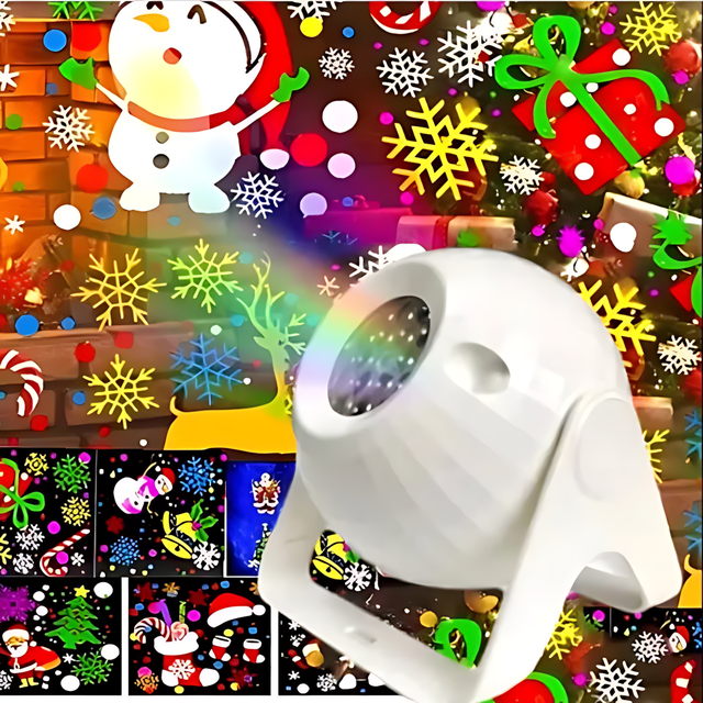 - Динамічні проєкції: Візерунки у формі сніжинок і сніговиків прикрасять будь-який простір, проєктуючись на відстань до 8 метрів.