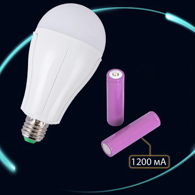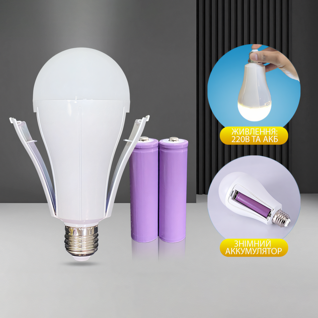 LED-Лампочка 15w 2 в 1, з акумулятором 2 x 18650, цоколь E27, працює від 220 В і від вбудованих акб