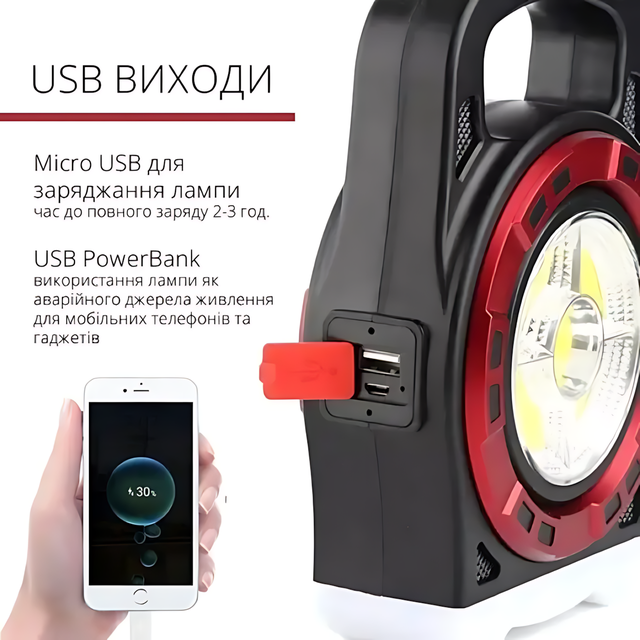 - 🔦 2 формата освещения — кемпінгова лампа + бічний пошуковий ліхтар