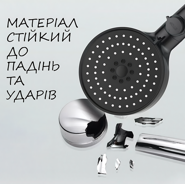 - 6 режимів подавання води: Струмінь, стандартний, розпилення, м'який, дитячий, пістолет;