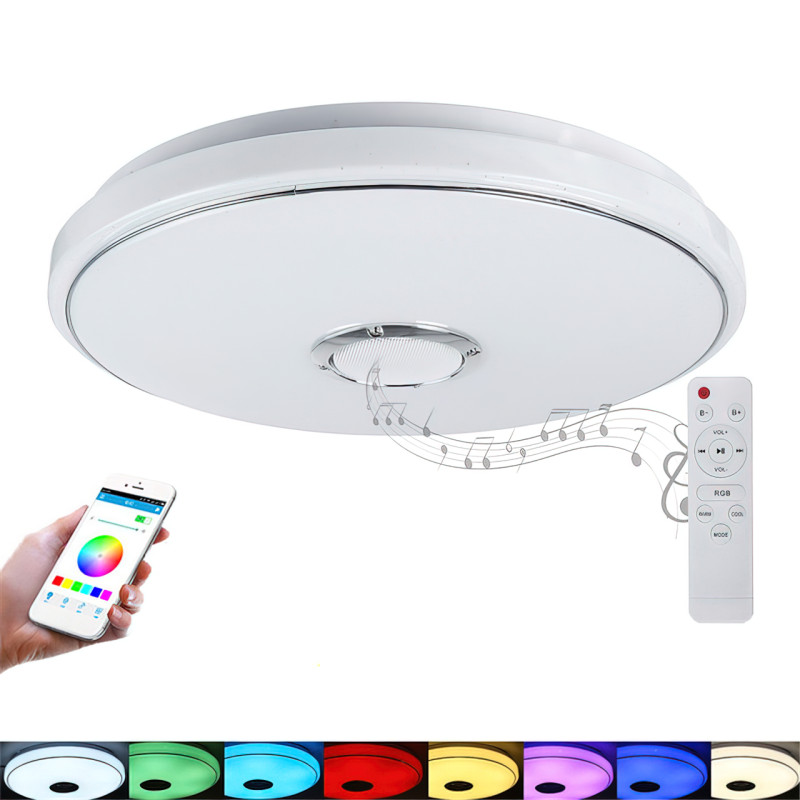 Цей світильник ідеально підійде для освітлення кімнати площею до 16 квадратних метрів. У комплекті до нього є зручний пульт керування, що дає змогу регулювати колір світла в діапазоні від 3000 К до 6000К. Не тільки функціональний світильник, але й зручний нічник: на ньому є найлегший режим, який може використовуватися як нічник. Також світильник має кольорову підсвітку з різними режимами, щоб створити атмосферу, яка відповідає вашому настрою. Додатково ви можете керувати світильником через спеціальний застосунок на вашому телефоні, що додає зручності у використанні. До того ж у цій люстрі також встановлений динамік для відтворення музики, фільмів і навіть будильника з вашого смартфона або планшета за допомогою під'єднання через Bluetooth.