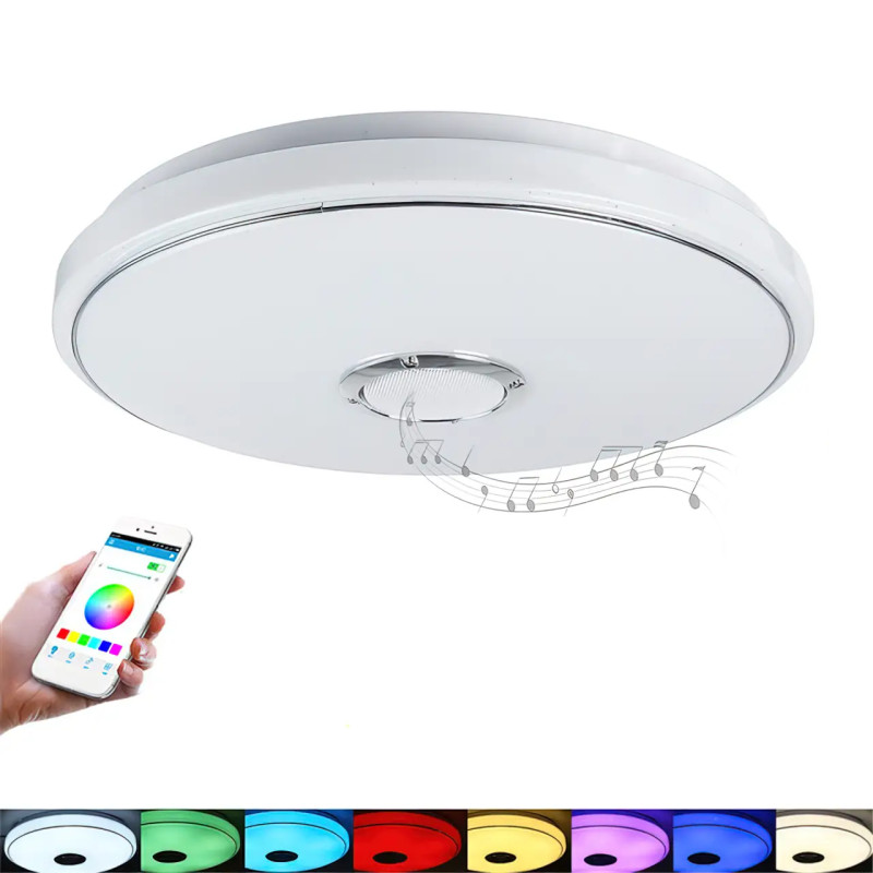 Цей світильник ідеально підійде для освітлення кімнати площею до 16 квадратних метрів. Додаток для смартфону дає змогу регулювати колір світла в діапазоні від 3000 К до 6000К. Не тільки функціональний світильник, але й зручний нічник: на ньому є найлегший режим, який може використовуватися як нічник. Також світильник має кольорову підсвітку з різними режимами, щоб створити атмосферу, яка відповідає вашому настрою. До того ж у цій люстрі також встановлений динамік для відтворення музики, фільмів і навіть будильника з вашого смартфона або планшета за допомогою під'єднання через Bluetooth.