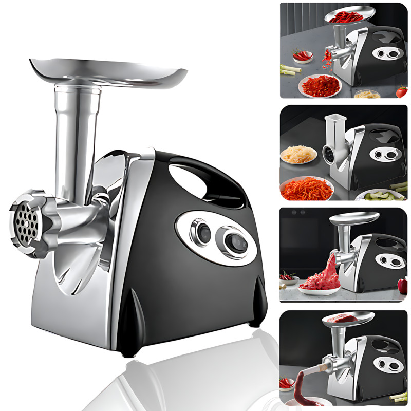 - Висока потужність: Мотор потужністю 3800 Вт дає змогу швидко й ефективно переробляти до 2 кг м'яса за хвилину;