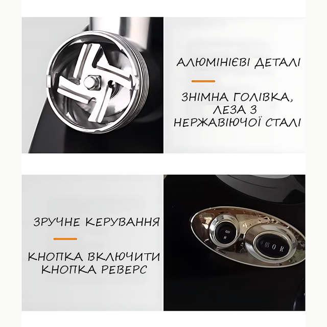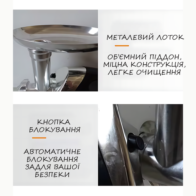 - Низький рівень шуму: М'ясорубка працює тихо, що робить процес приготування комфортнішим;