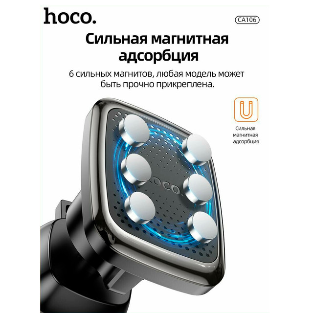 - Зносостійкість і довговічність: Виготовлений із якісних матеріалів, Hoco CA106 Air Holder забезпечує довгий термін експлуатації, не піддаючися зносу або пошкодженням під час щоденного використання.