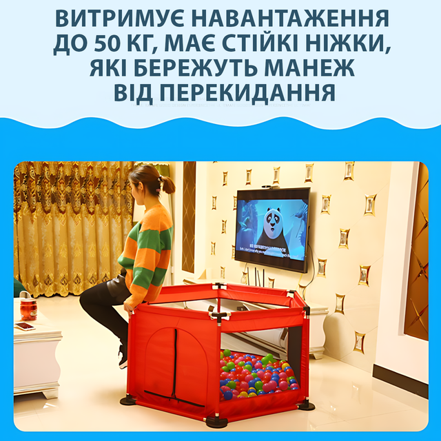 Манеж дитячий складаний шестикутний червоний із сіткою з неіржавкої сталі, Oxford 210D, пластику, 130×65×65 см, навантаження до 50 кг, червоний