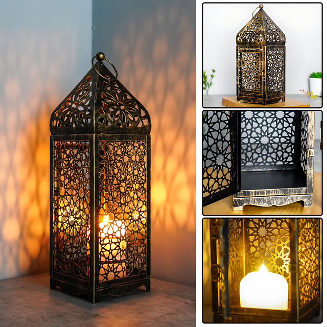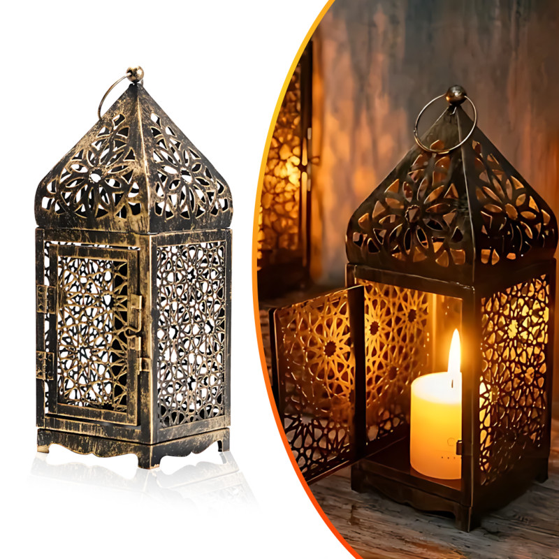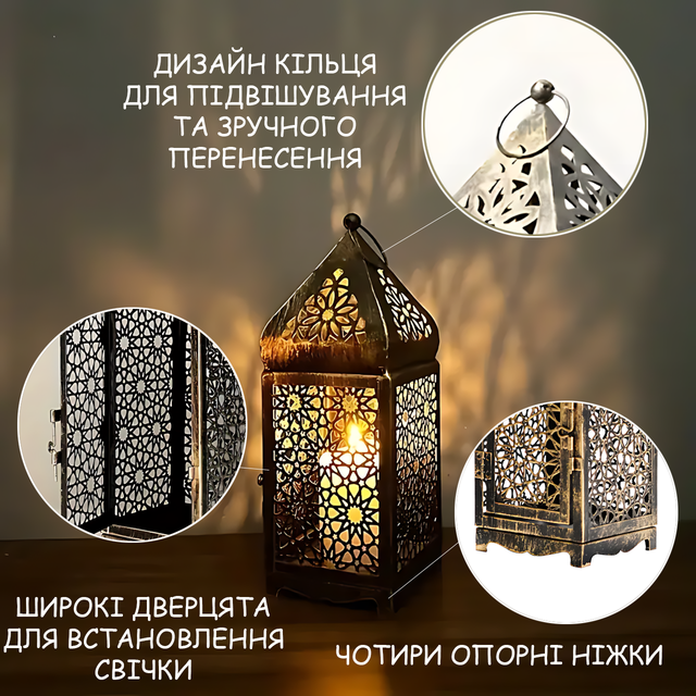 Марокканський декоративний свічник MA756, металевий ліхтар-лампа для свічок, настільний лантерн у вінтажному стилі, 25 см