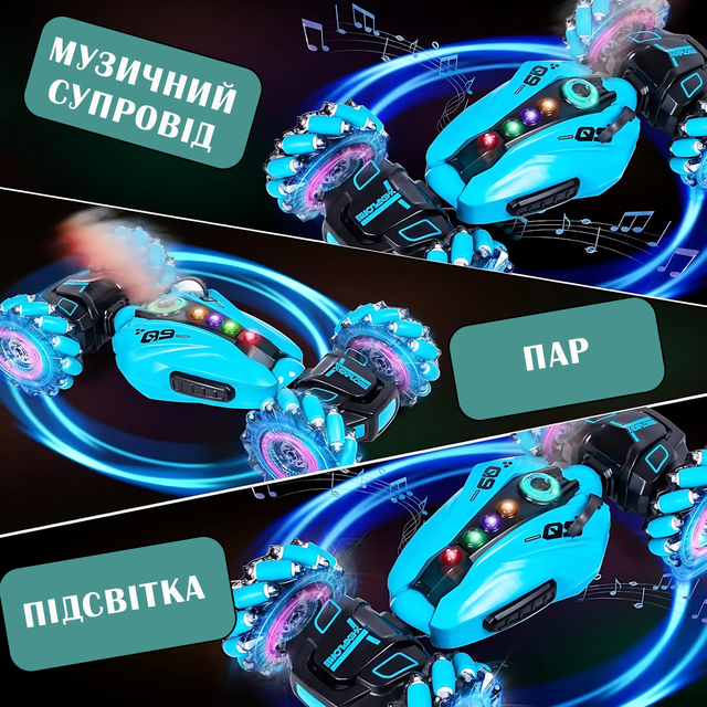 Машинка-перевертень Toy car AND 2277-3B з LED-підсвіткою, парою та звуковими ефектами, 2 пульти д/у