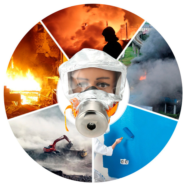 Евакуаційна маска Fire Mask - це захисний пристрій призначений для безпечного залишення аварійної зони у разі взаємодії з окисом вуглецю (CO), ціанідом водню (HCN), хлоридом водню (HCI), отруйним димом та туманами. Аварійний девайс дає можливість перебувати в задимленому приміщенні до 30 хвилин, а спеціальний термостійкий матеріал захистить шкіру та органи голови від можливих опіків. Протигаз оснащений гумою ущільнювача на шию для герметичного ізолювання від зовнішнього середовища і регулювальними ремінцями для налаштування розміру під будь-якого користувача.