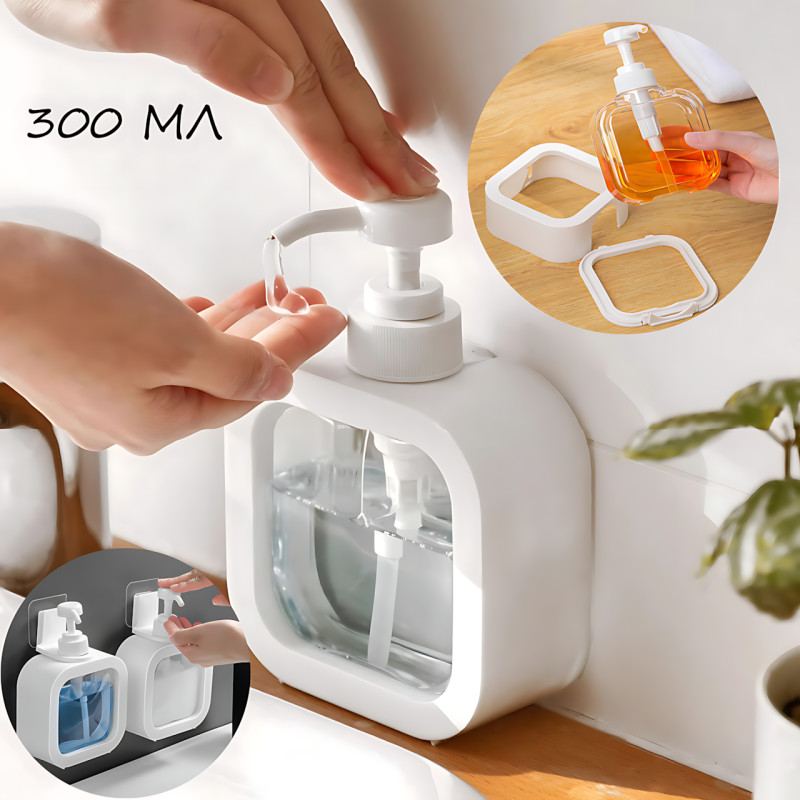 - Розбірна конструкція: Рамка основа, прозорий флакон для мила,
