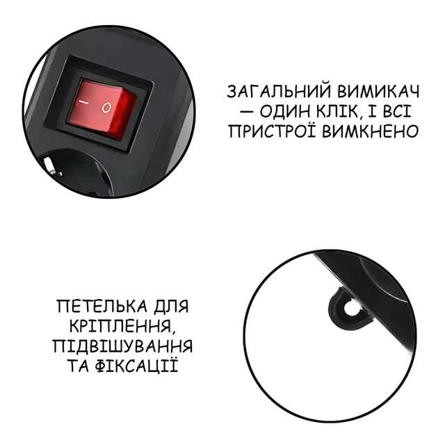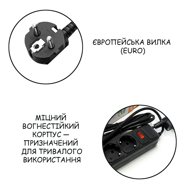 Всередині — вбудований фільтр, який згладжує стрибки напруги + мережеві перешкоди. Для комп'ютерів, телевізорів, роутерів і зарядок це як теплий пледик: працювати легше, слугує довше.