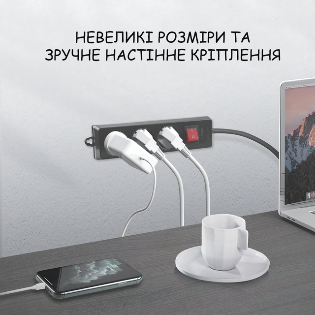 - 3 розетки із захистом — техніка під'єднана, розетки не нервують